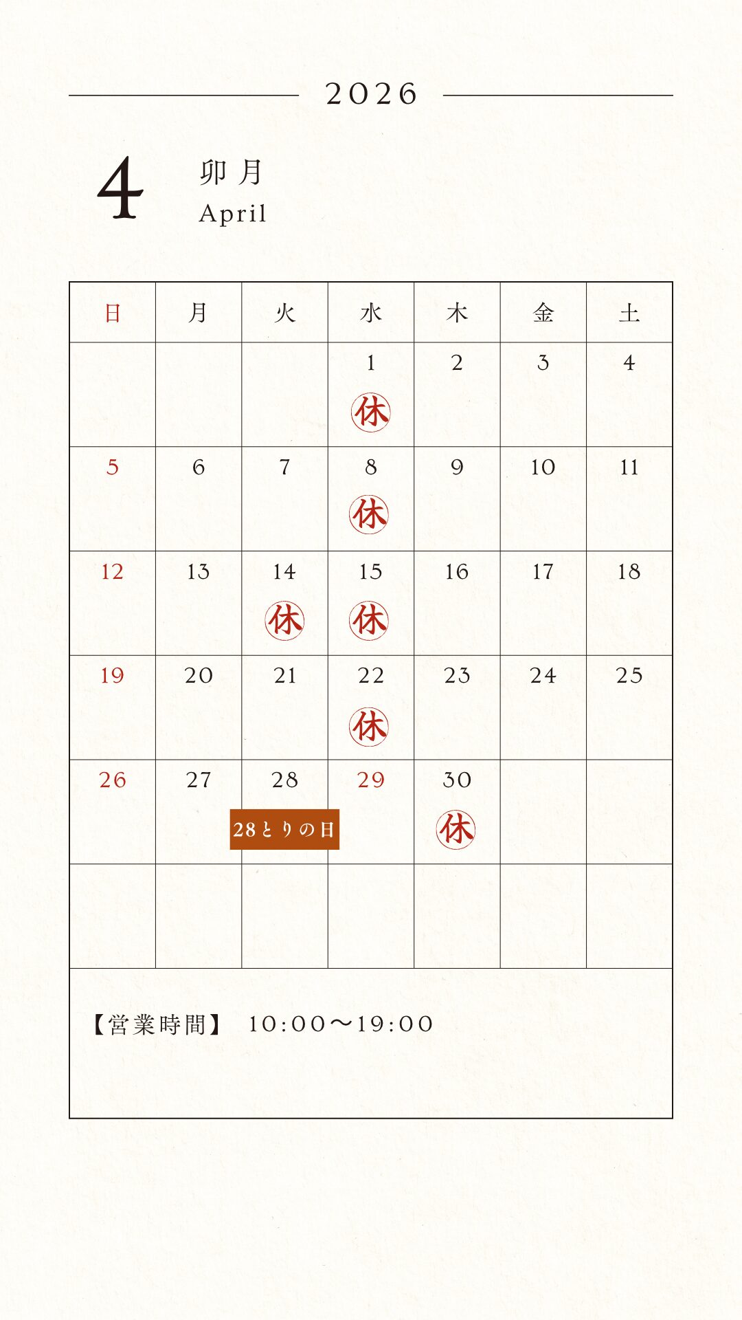*火曜日は月1回休み